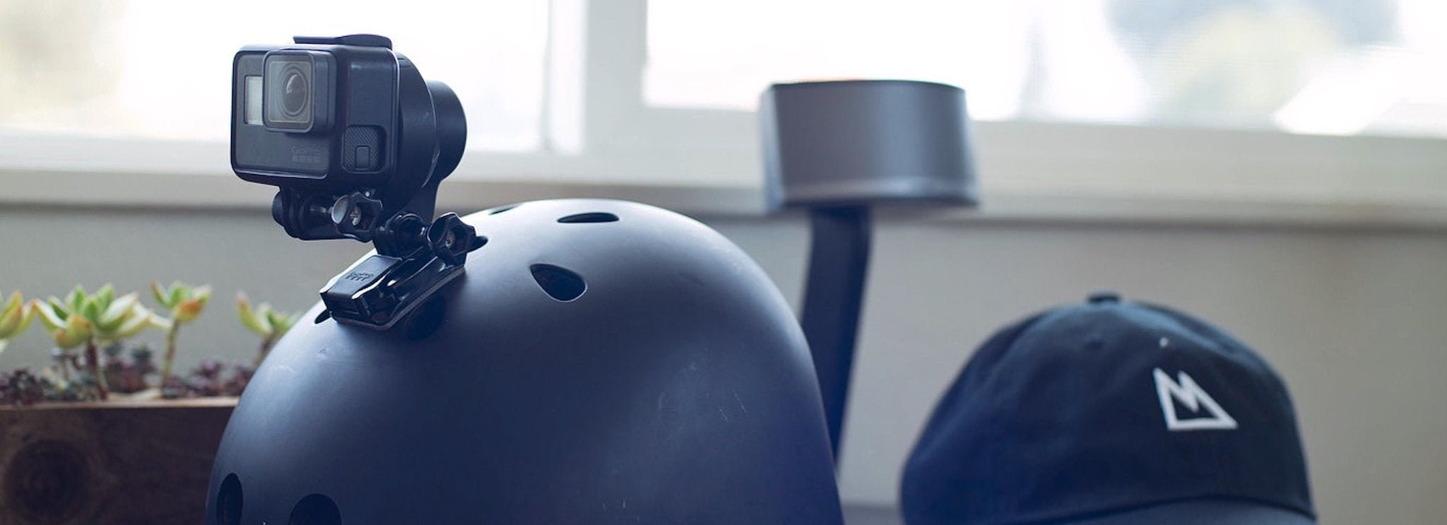 The Quark weight and measure a fraction of a 3 axis gimbal, which allow you to mount it everywhere and it doesn't bother you on a helmet.
